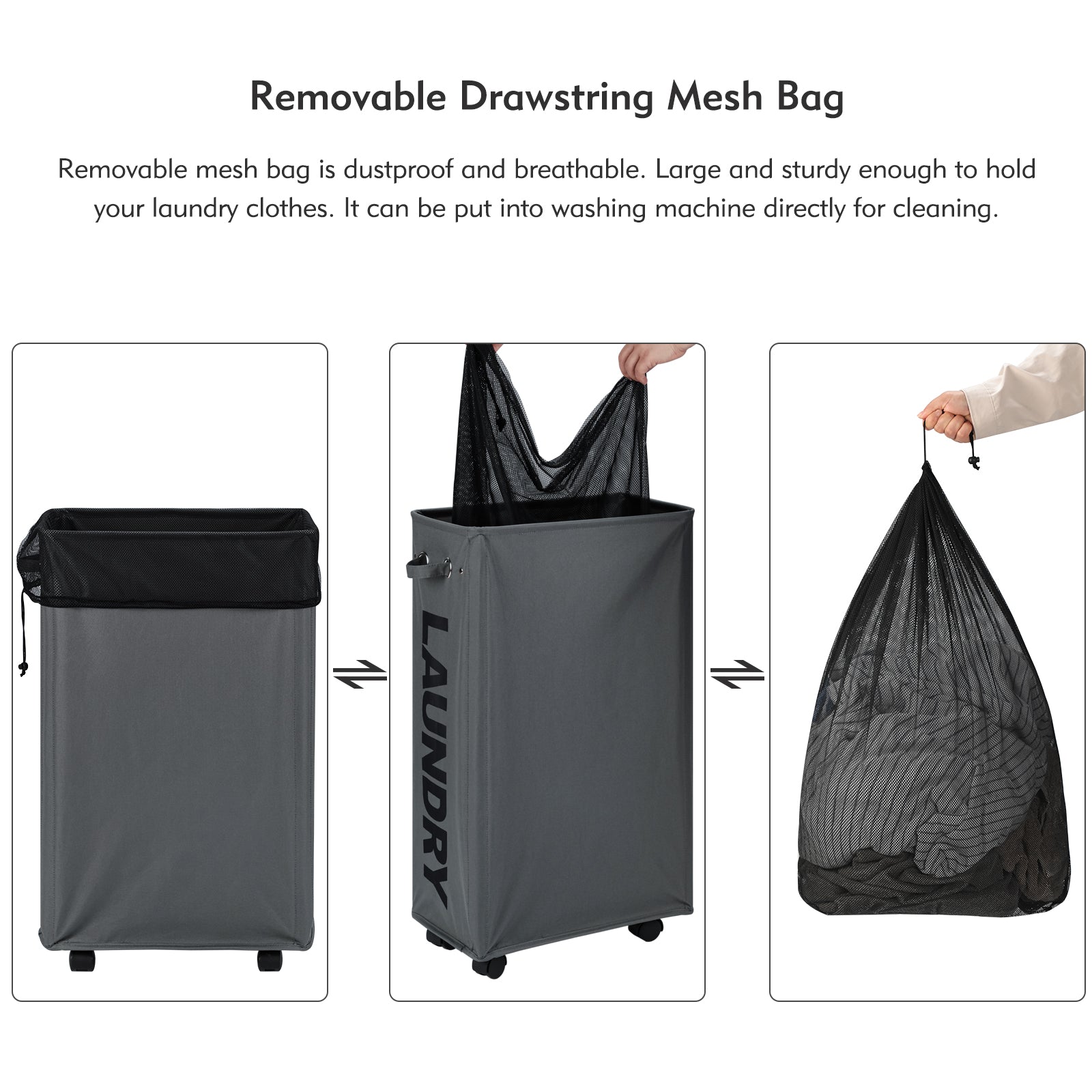 - The laundry hamper on wheels is easy to move, brake on one of the wheels ensure safety for home use