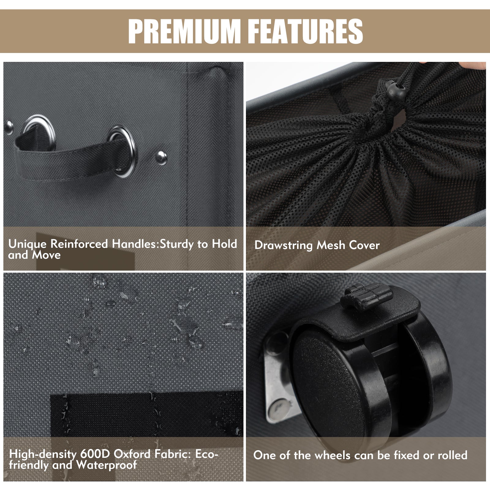 - 4 WHEELS - The laundry hamper on wheels is easy to move, brake on one of the wheels ensure safety for home use.
