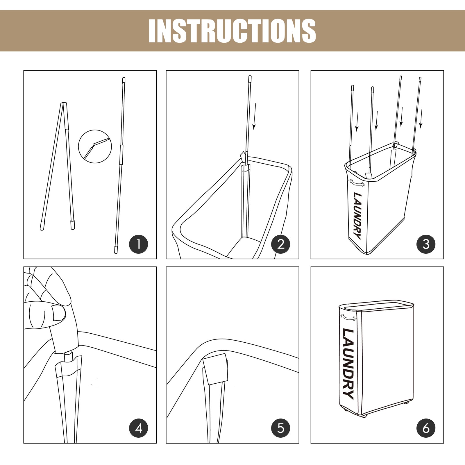 - Metal frame on the top and 4 rods on the corners to shape the sturdy hamper