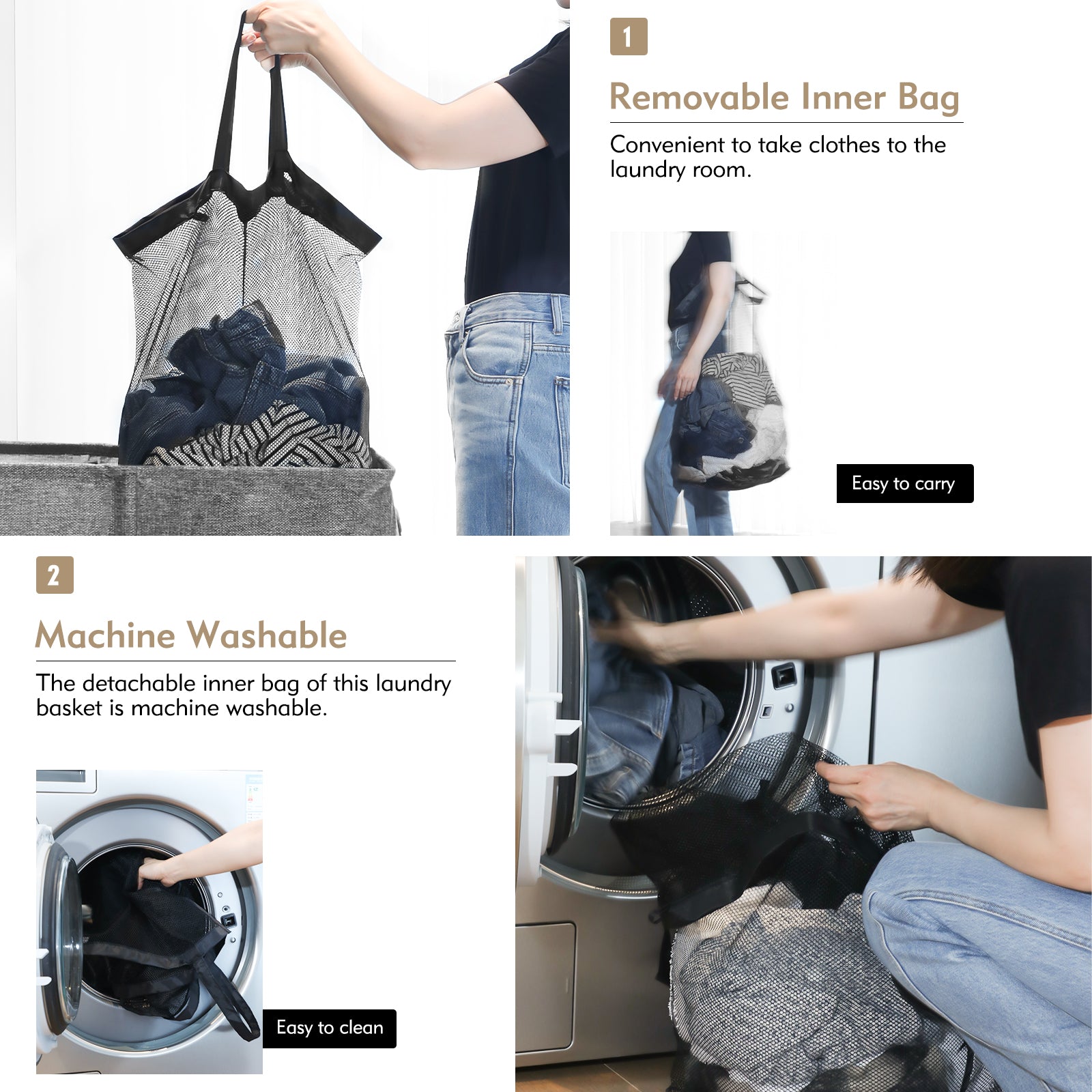 - Detachable Laundry Bag: Convenient for collecting and transporting dirty clothes, making laundry easier and tidier.