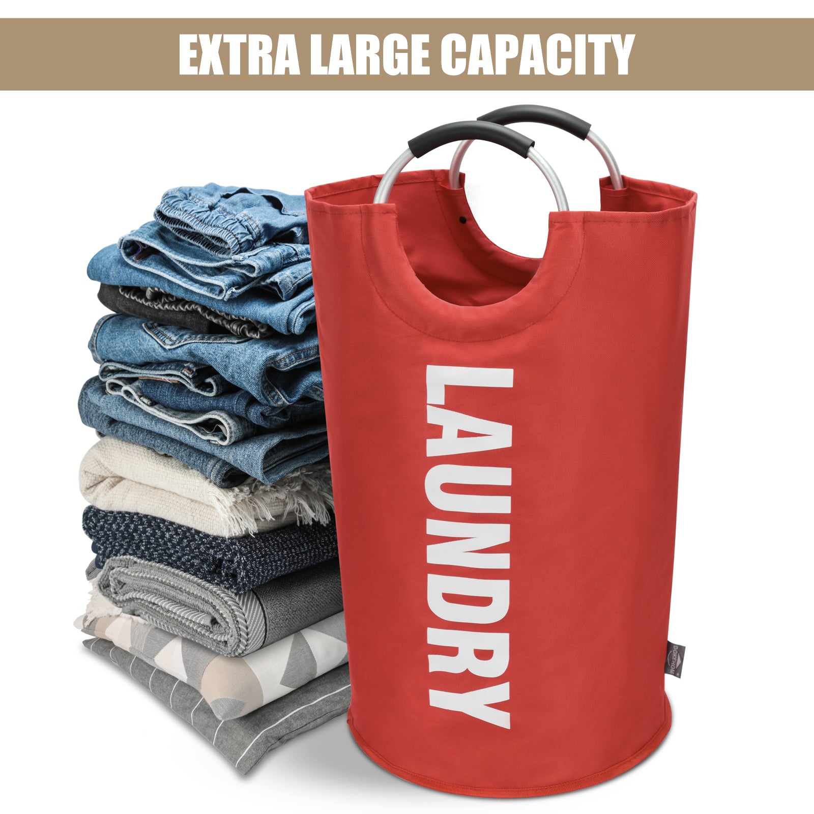 SOFT HANDLE - Made from aluminum with soft EVA grip, sturdy and comfortable to carry a full load hamper.