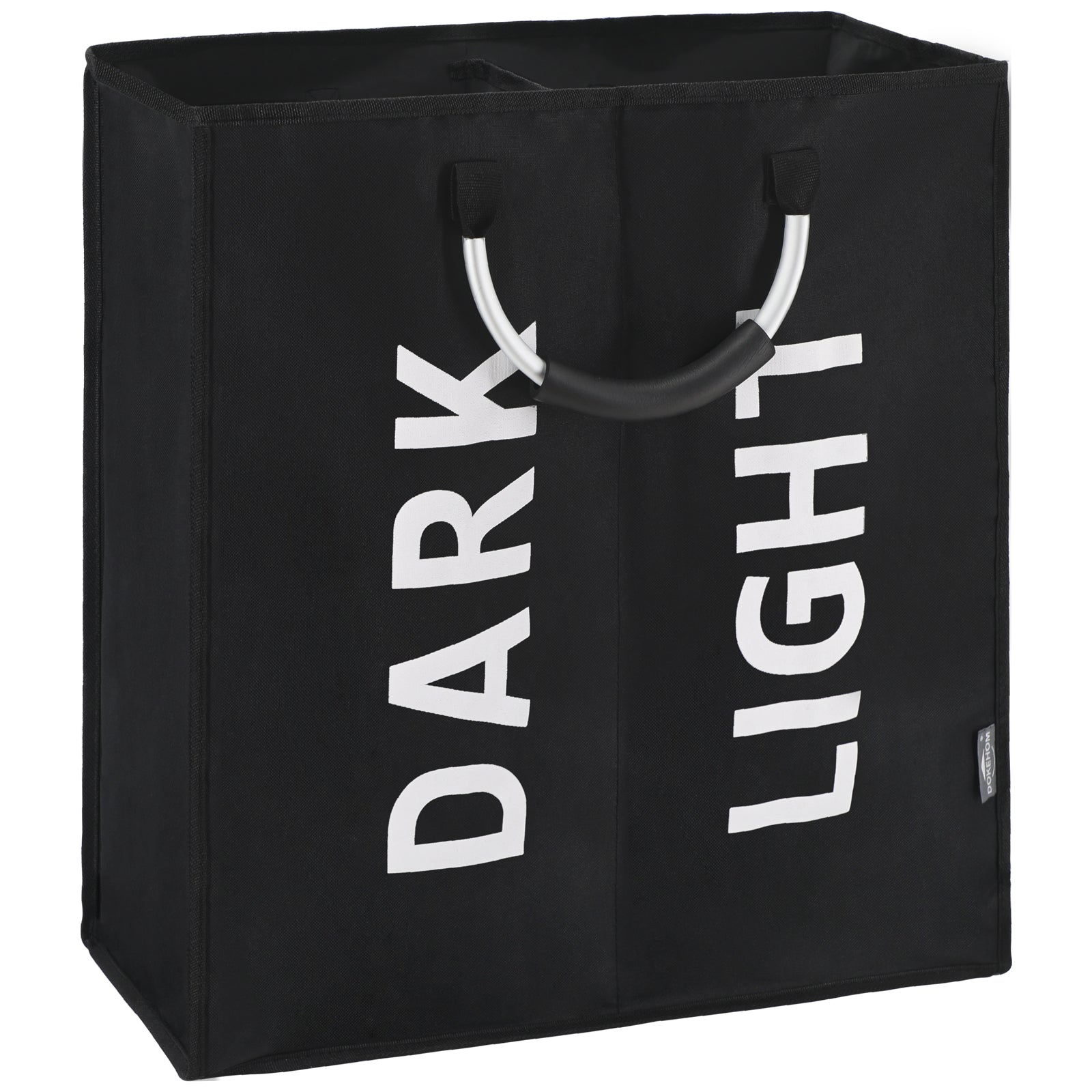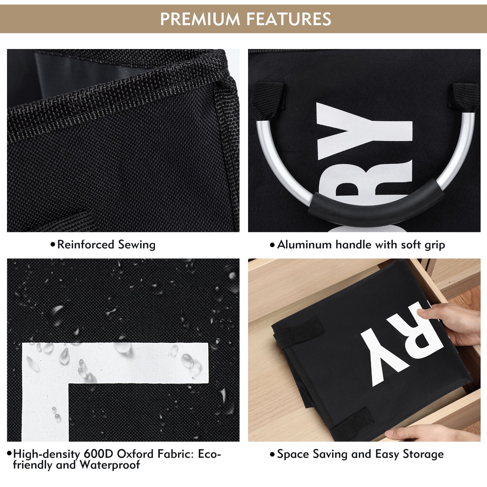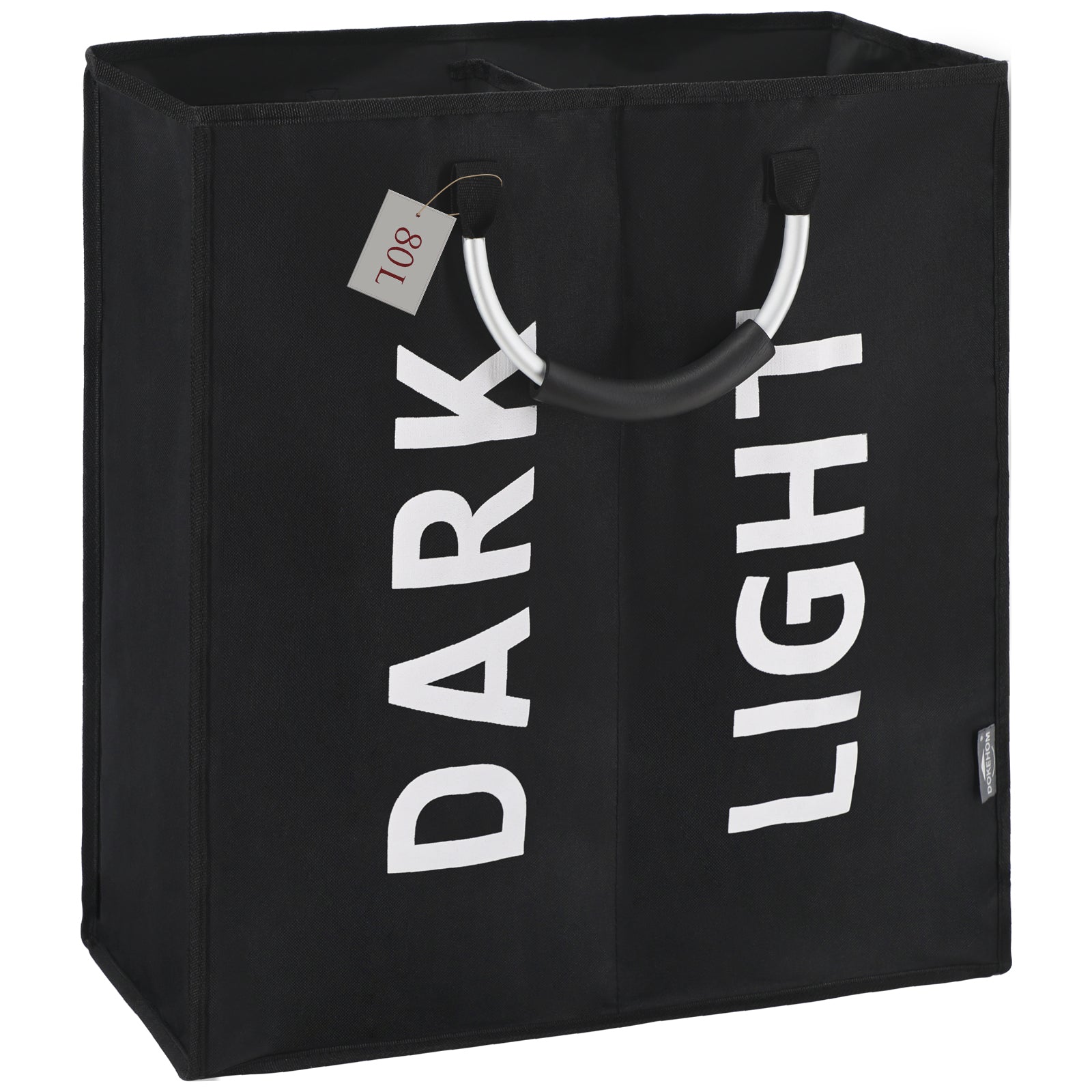 DOKEHOM 50L/80L/120L Large Collapsible Washing Laundry Basket Bag with 2 Sections for Bedroom, Fabric (Black)