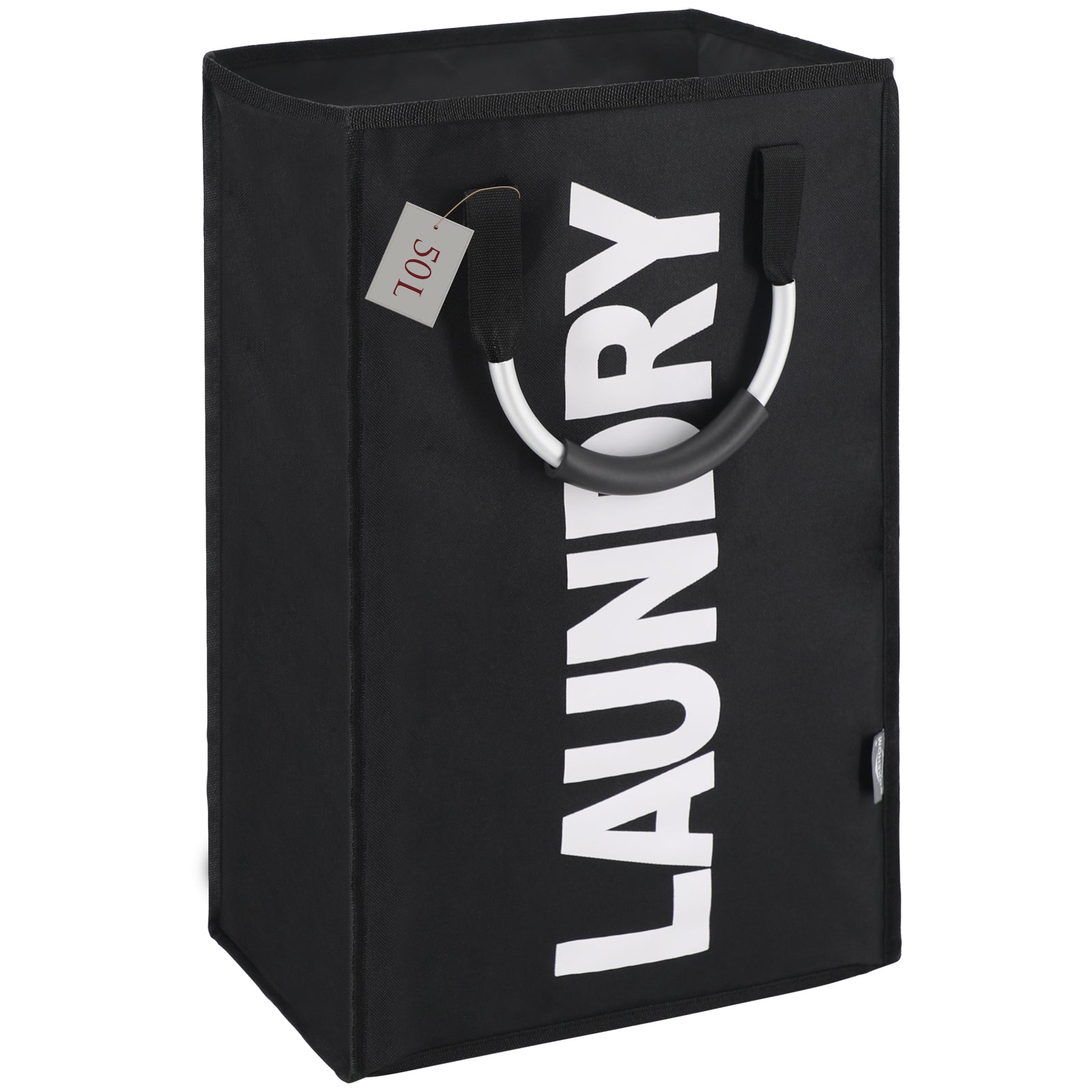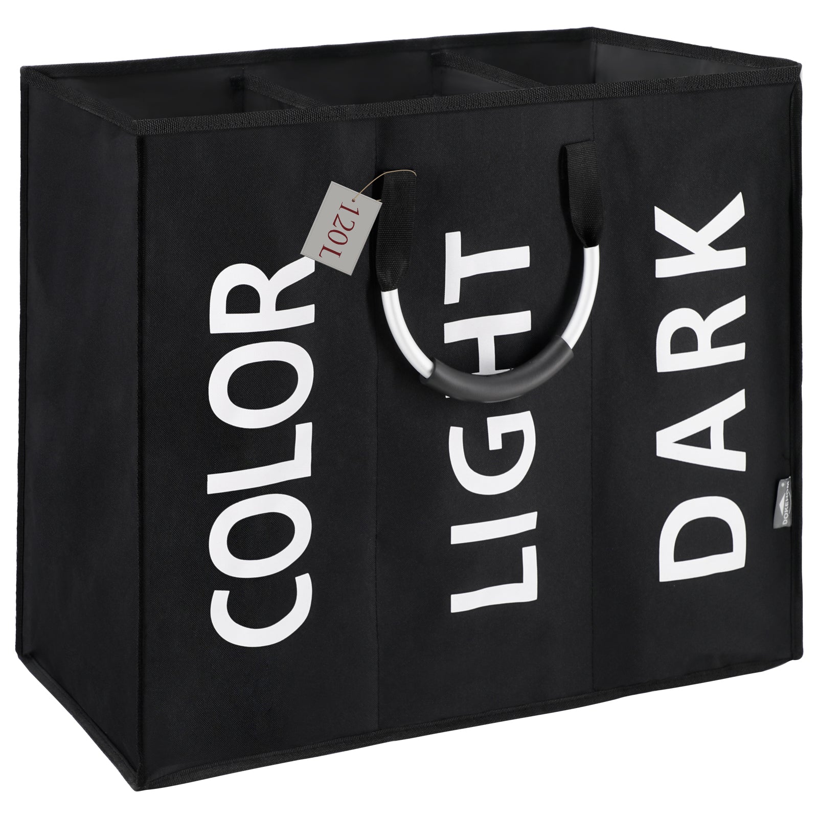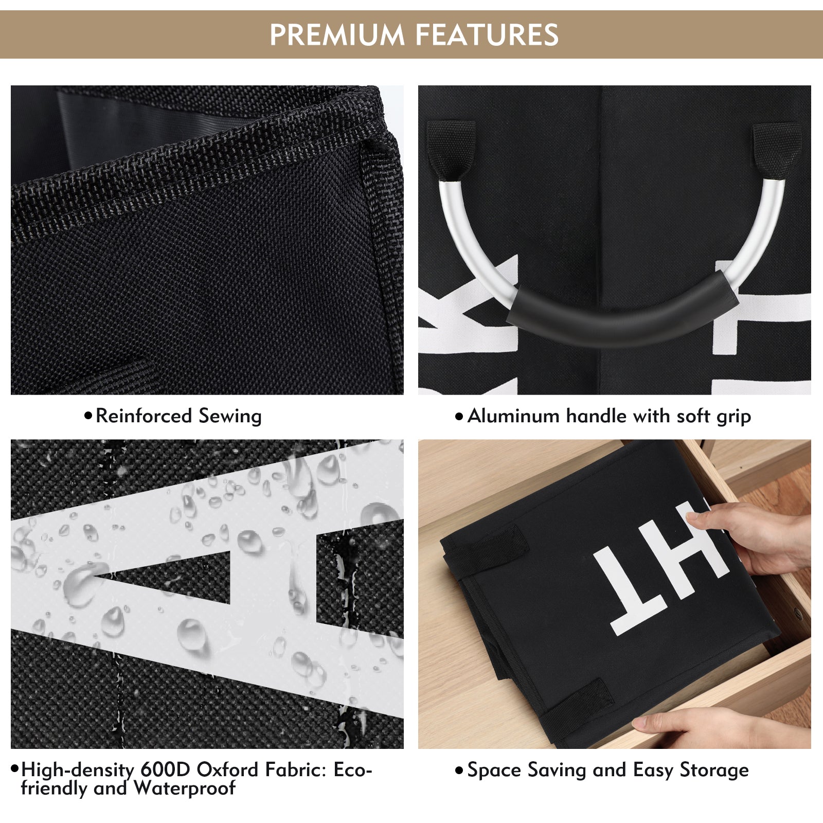 DOKEHOM 50L/80L/120L Large Collapsible Washing Laundry Basket Bag with 2 Sections for Bedroom, Fabric (Black)
